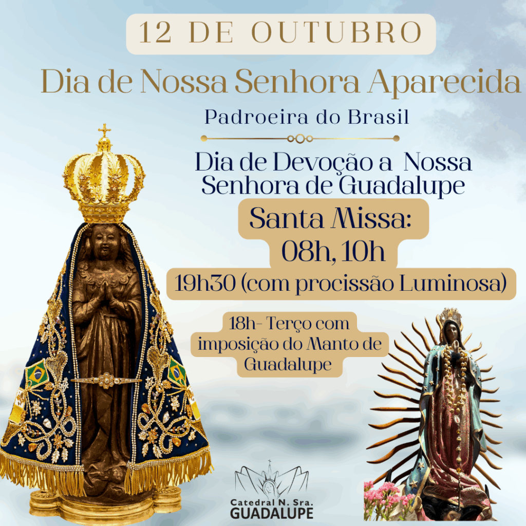 Está se aproximando a Solenidade em Honra a Nossa Senhora Aparecida, padroeira do Brasil, neste dia também celebramos o Dia de Devoção a Nossa Senhora de Guadalupe.
